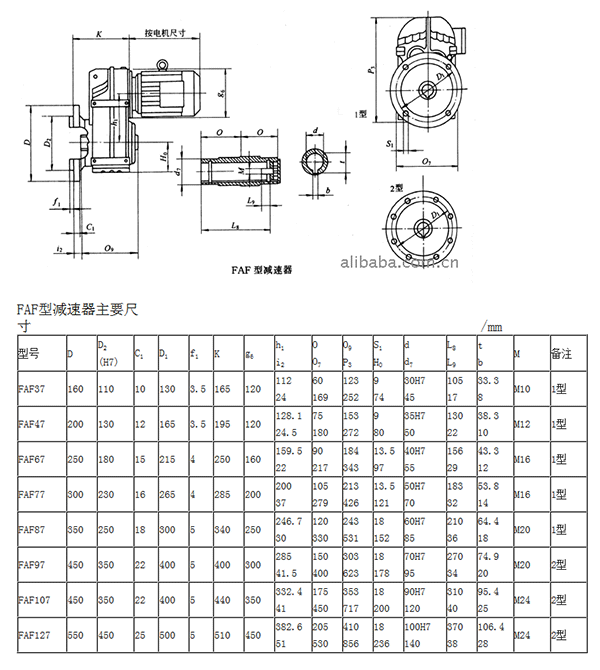 d.FAF型—軸裝法蘭式平行軸斜齒減速器。