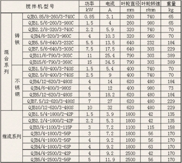 攪拌器材質(zhì)代號 S:不銹鋼 C:鑄鐵 P:聚氨酯
