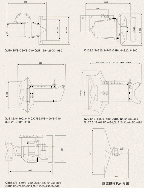 5.QJB潛水?dāng)嚢铏C(jī)的主機(jī)及安裝系統(tǒng)尺寸