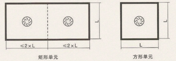 雙曲面攪拌機的應用是按照池體長、寬比例不超過2倍的原則,將長方形池體劃分為等面積的工作單元,以此確定使用攪拌機的數量,然后依據每臺雙曲面攪拌機的有效服務面積對應池體面積來確定型號。如下圖: